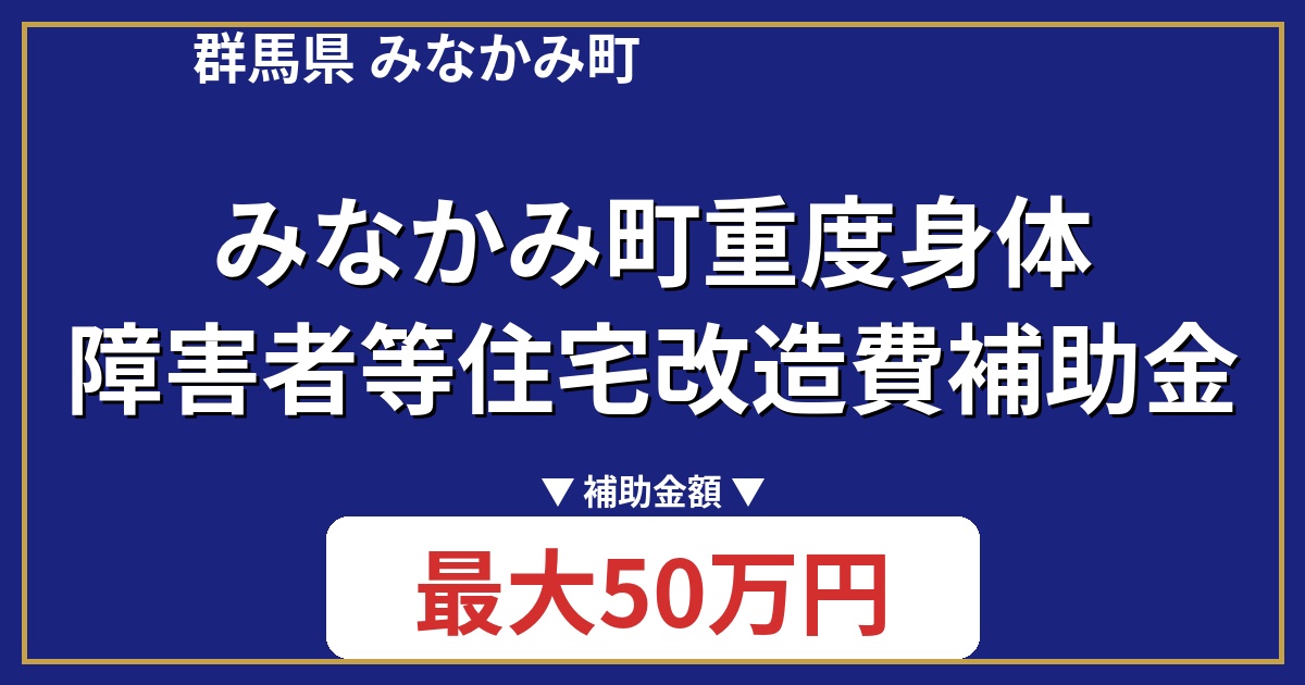 | 制度名 | みなかみ町重度身体障害者等住宅改造費補助金交付事業 |