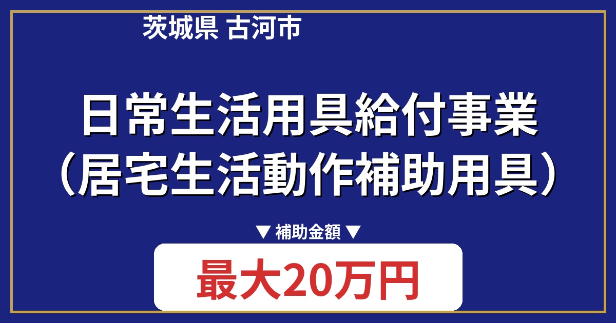 古河市の日常生活用具給付事業は、バリアフリー改修工事を対象とした補助金制度です。手すりの設置や段差解消などの工事費用の一部を補助し、高齢者や障害者の住環境改善を支援します。上限20万円の工事費用の9/10が補助されます。