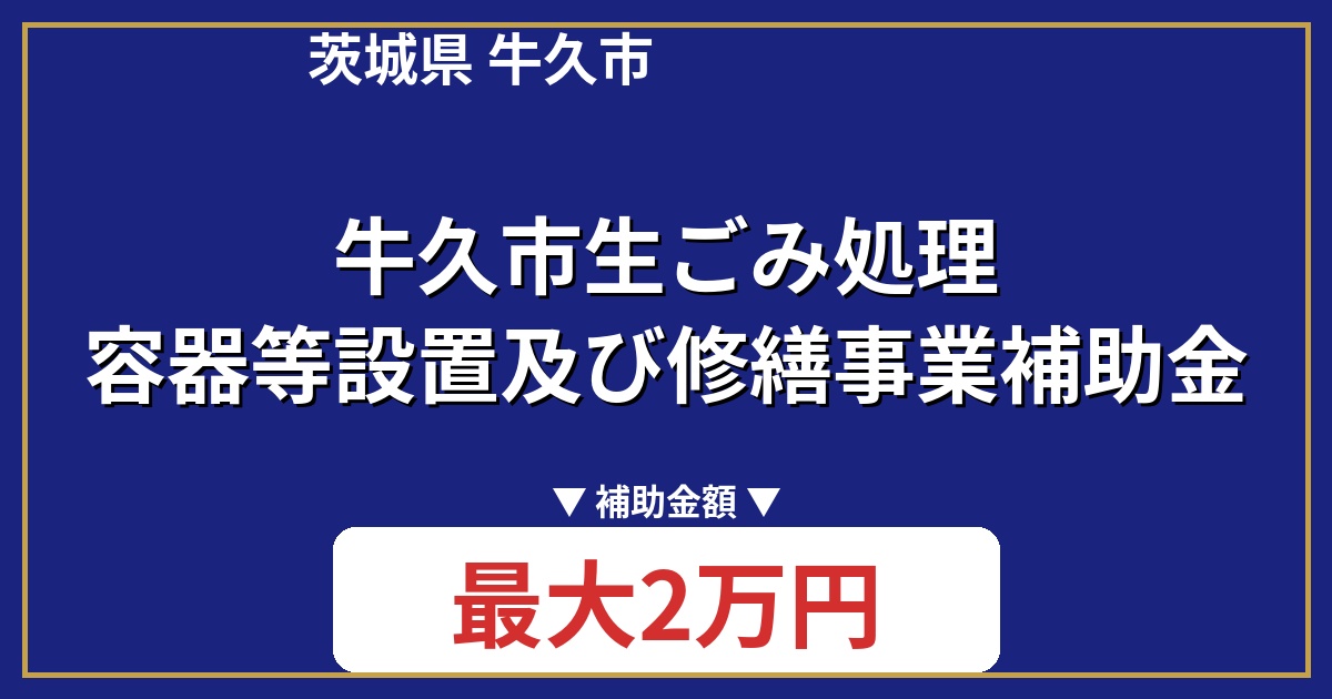 牛久市のホームページまたは廃棄物対策課で補助金の詳細を確認。