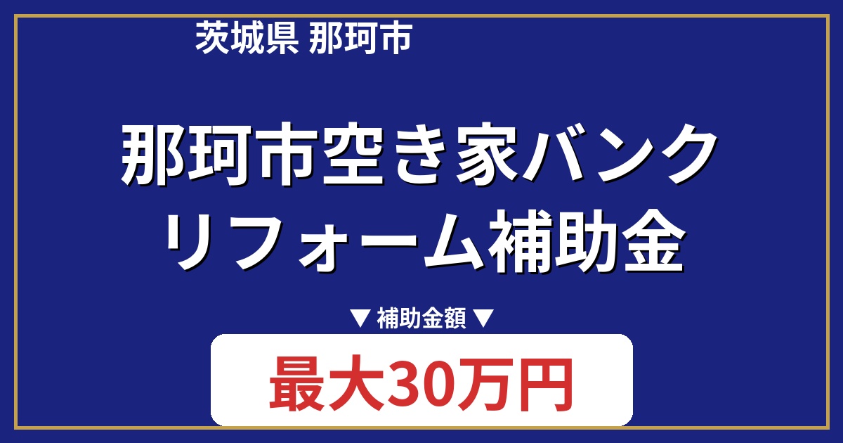 那珂市空き家バンクリフォーム補助金は、空き家バンクに登録された空き家のリフォーム工事、または家財処分にかかる費用の一部を補助する制度です。リフォーム工事費用の1/2(上限30万円)、家財処分費用の1/2(上限10万円)が補助されます。那珂市空き家バンクの物件登録者または利用登録者が対象です。