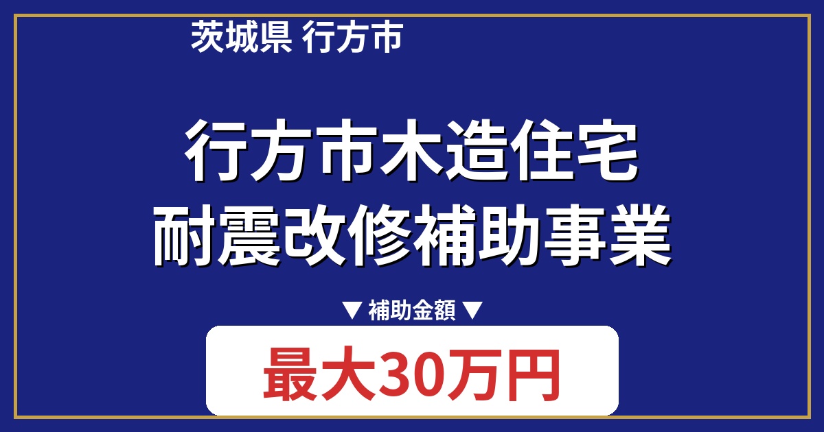 | 制度名 | 行方市木造住宅耐震改修補助事業 |