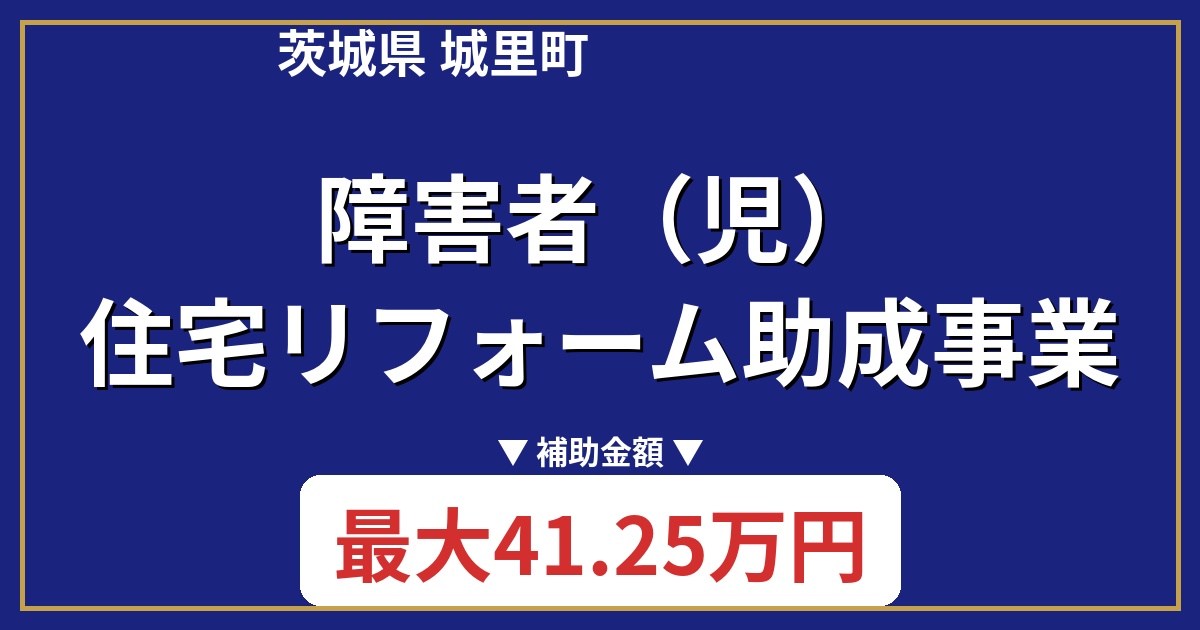 城里町の障害者(児)住宅リフォーム助成事業は、障害のある方やそのお子様が居住する住宅のリフォーム費用を助成する制度です。