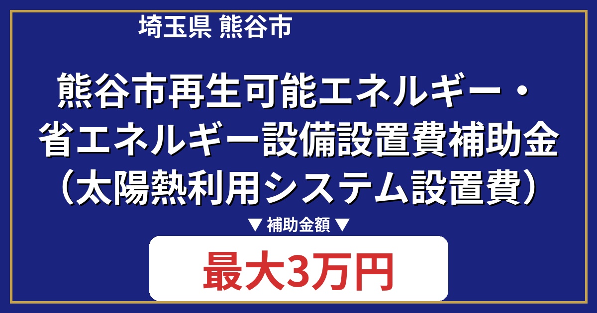 制度名 熊谷市再生可能エネルギー・省エネルギー設備設置費補助金(太陽熱利用システム設置費)