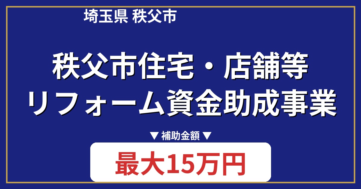秩父市住宅・店舗等リフォーム資金助成事業は、市内の住宅・店舗等のリフォーム費用の一部を補助する制度です。工事費の10%(上限15万円)が補助されます。市に登録された業者による施工が必須です。