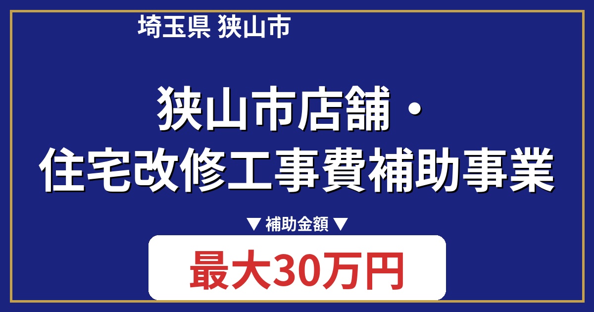 埼玉県狭山市にお住まいの皆様へ。店舗や住宅のリフォームをお考えではありませんか?狭山市では、改修工事費の一部を補助する「狭山市店舗・住宅改修工事費補助事業」を実施しています。この制度を活用して、住み慣れた家や店舗をより快適に、魅力的にしませんか?