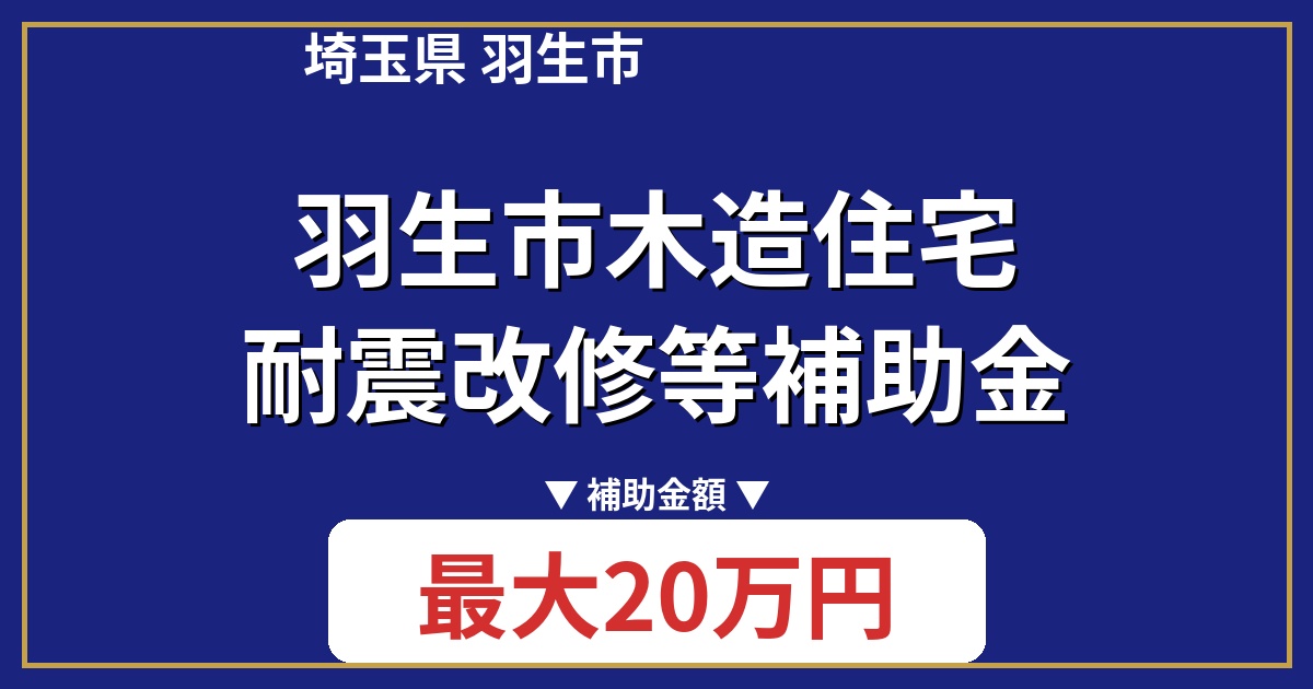| 制度名 | 羽生市木造住宅耐震改修等補助金 |