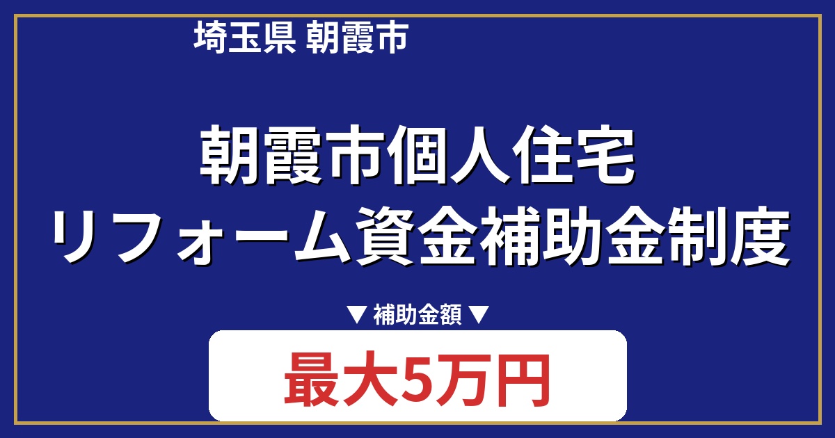 | 制度名 | 朝霞市個人住宅リフォーム資金補助金制度 |