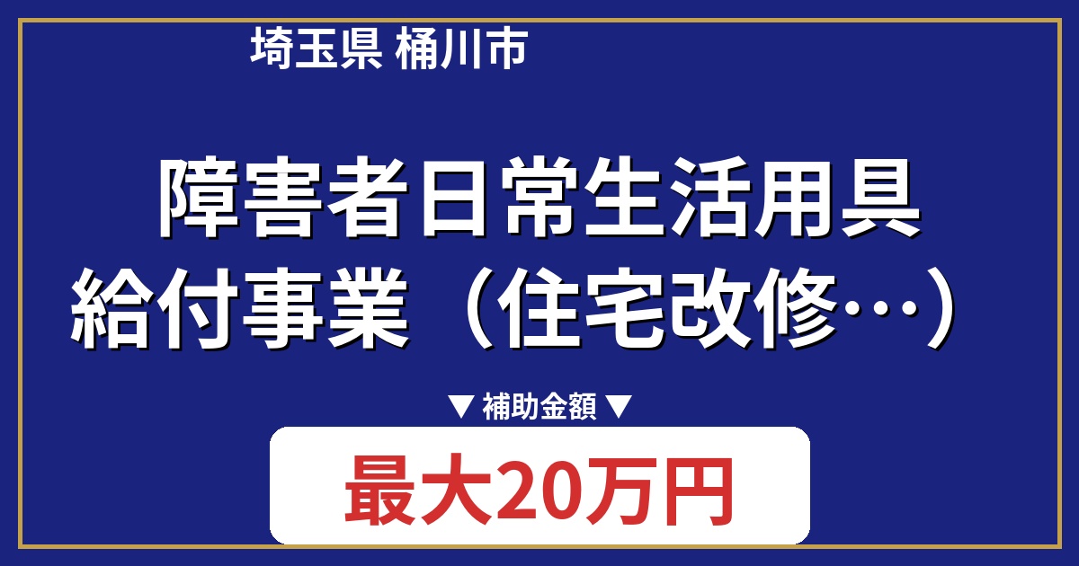 埼玉県桶川市では、障害のある方の日常生活を支援するため、住宅改修に対する給付事業を行っています。バリアフリー化を目的とした改修工事に対し、費用の一部を補助する制度です。この制度を活用して、より快適で安全な住環境を実現しましょう。