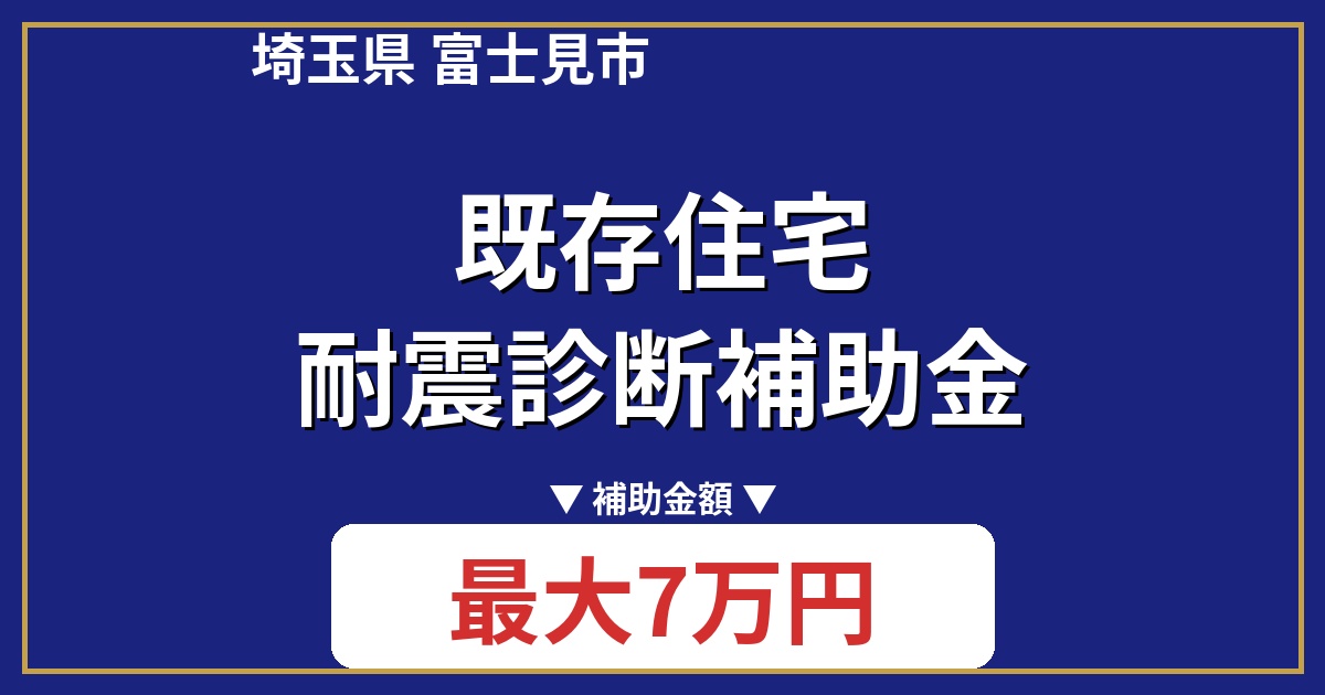 富士見市既存住宅耐震診断補助金は、旧耐震基準で建てられた住宅の耐震診断費用を一部補助する制度です。