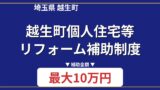 補助対象となる工事費用に応じて補助金が支給され、市外からの転入や子育て世帯には加算があります。