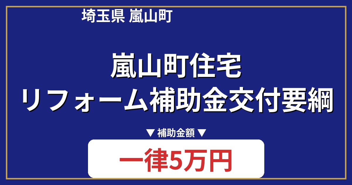 嵐山町住宅リフォーム補助金は、町民が所有する住宅の機能向上を目的としたリフォーム工事に対して、一律5万円の補助金を交付する制度です。対象となる住宅や申請者の要件が定められていますので、事前に確認が必要です。