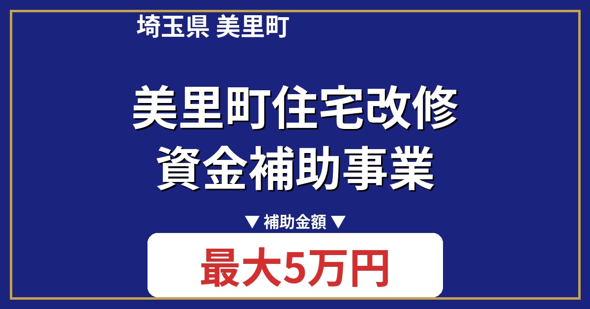 【埼玉県 美里町】「美里町住宅改修資金補助事業」とは?金額や対象工事をわかりやすく解説