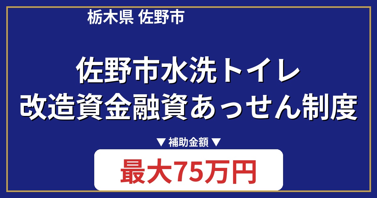 | 制度名 | 佐野市水洗トイレ改造資金融資あっせん制度 |