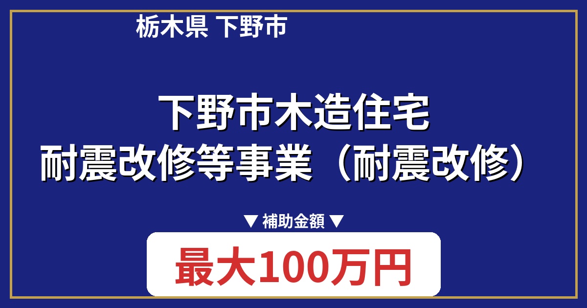 | 制度名 | 下野市木造住宅耐震改修等事業(耐震改修) |