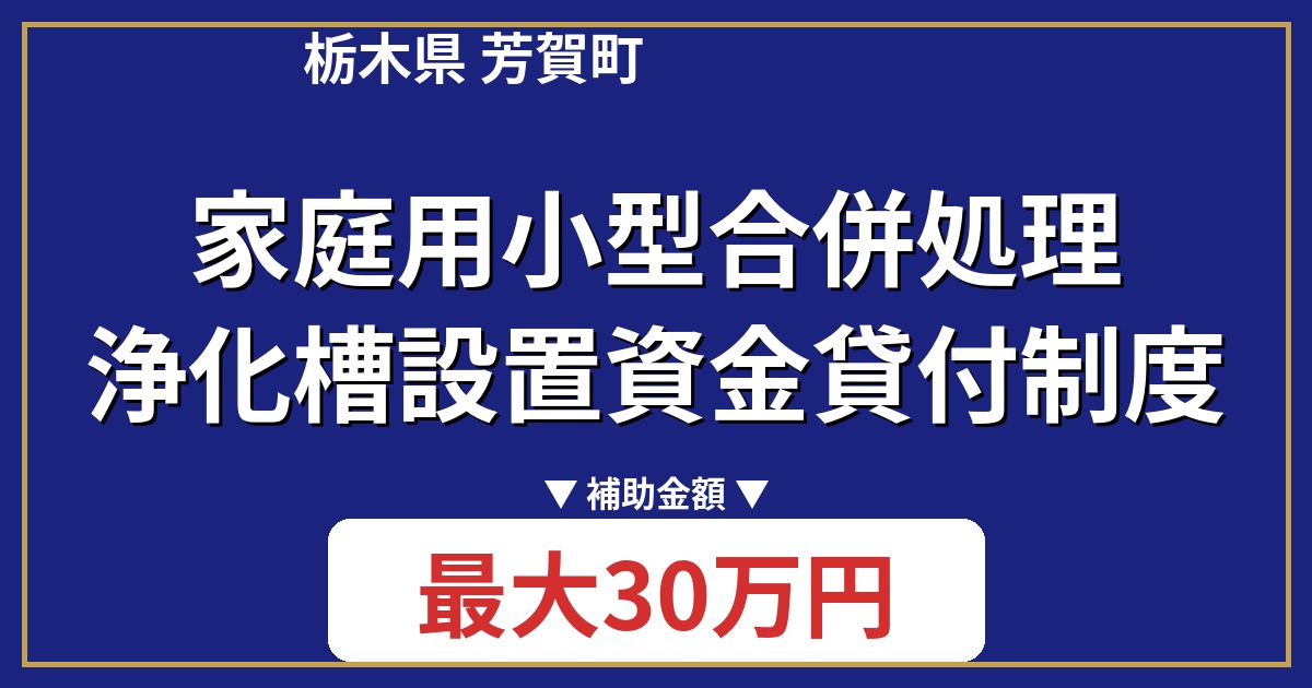 栃木県芳賀町では、家庭用小型合併処理浄化槽の設置を支援する「家庭用小型合併処理浄化槽設置資金貸付制度」を提供しています。