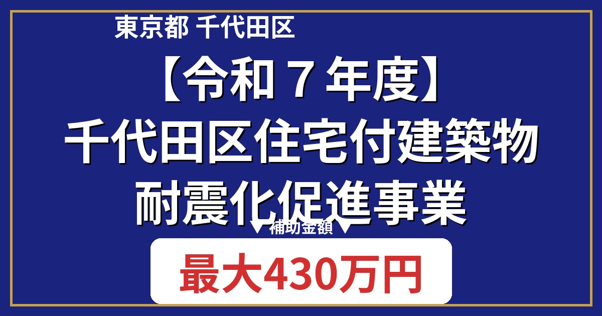 | 制度名 | 【令和7年度】千代田区住宅付建築物耐震化促進事業 |