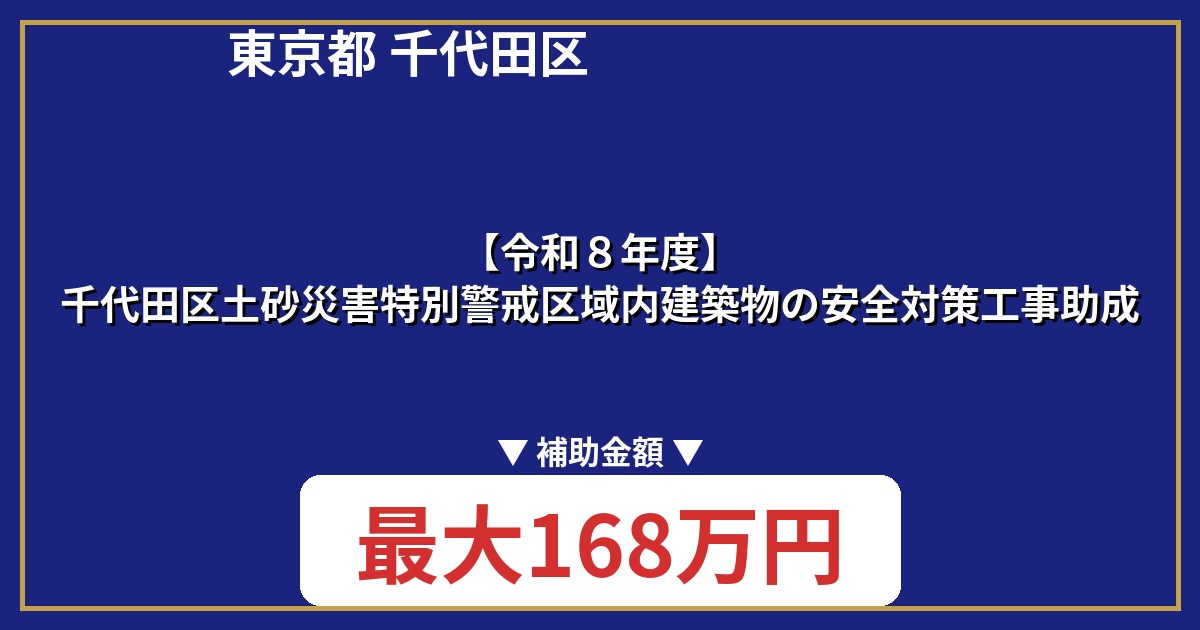 | 制度名 | 【令和7年度】千代田区土砂災害特別警戒区域内建築物の安全対策工事助成 |