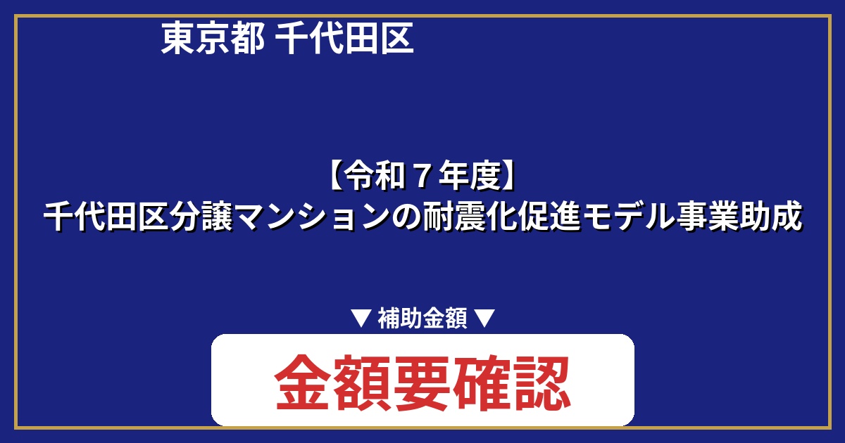 | 制度名 | 【令和7年度】千代田区分譲マンションの耐震化促進モデル事業助成 |