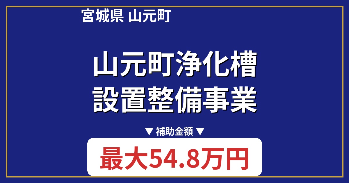 宮城県山元町では、生活環境の改善と水質保全を目的として、浄化槽設置費用の一部を補助する「山元町浄化槽設置整備事業」を実施しています。