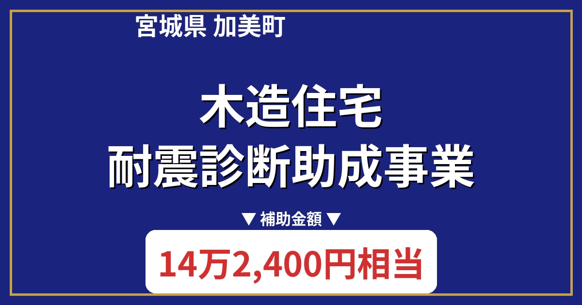 宮城県加美町では、木造住宅の耐震化を支援する「加美町木造住宅耐震診断助成事業」を実施しています。